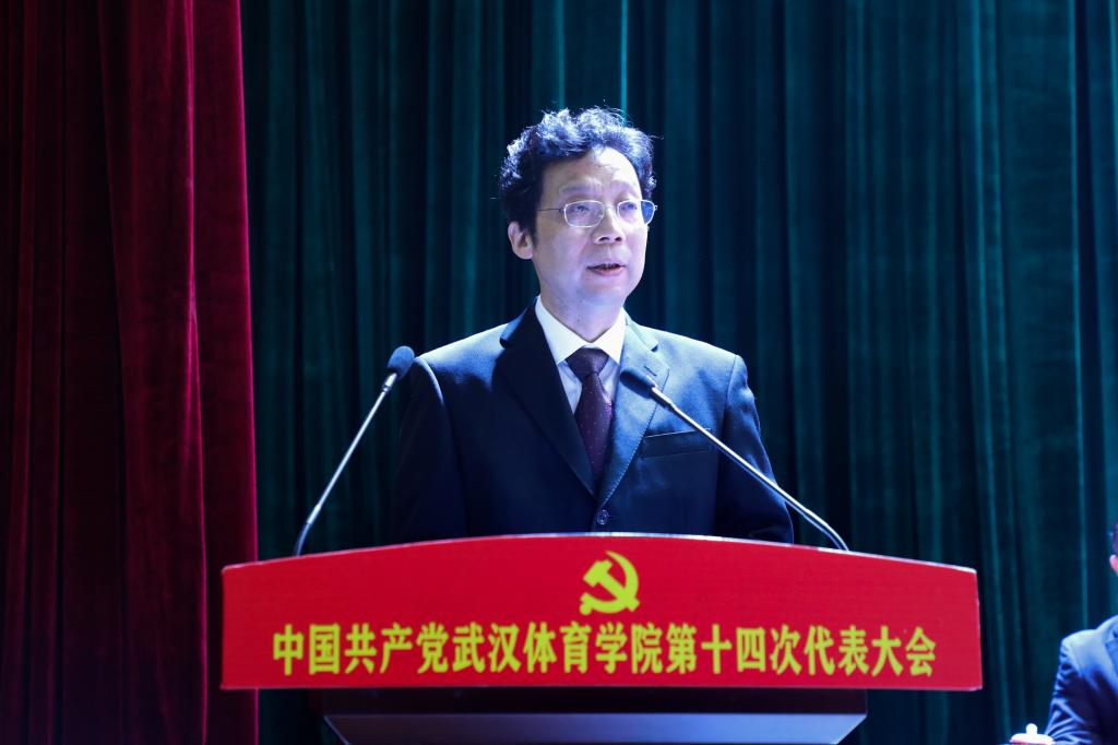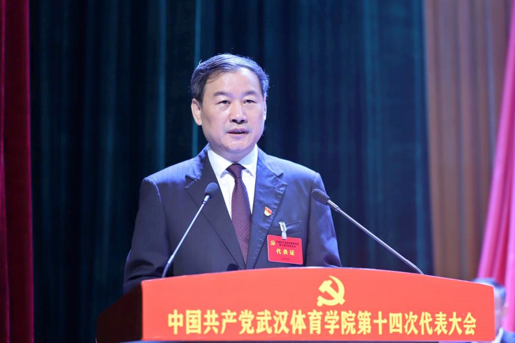 余学敏代表省委教育工委向大会的召开表示热烈祝贺。他表示,中共武汉体育学院第十四次代表大会是在“十四五”开局和全面建设社会主义现代化国家新征程开启之年召开的一次十分重要的会议,意义重大、影响深远。他指出,武汉体育学院第十三次党代会以来,学校党委高举习近平新时代中国特色社会主义思想伟大旗帜,充分发挥领导核心作用,以改革促发展,以实干促提升,在人才培养、科学研究、社会服务、文化传承创新、国际交流合作等方面都取得了长足的进步,为经济社会发展作出了积极贡献。余学敏要求,一是要以政治建设为统领,使学校始终成为坚持党的领导的坚强阵地。二是要落实立德树人根本任务,使学校始终成为培养社会主义建设者和接班人的重要基地。三是要贯彻新发展理念,使学校始终成为服务地方发展的示范高地。要充分发挥学科优势和办学特色,加快推进体育改革创新步伐,更新体育理念,借鉴国内外有益经验,推动湖北体育产业高质量发展,构建更高水平的全民健身公共服务体系,为健康湖北战略注入新的活力和动力,为“建成支点、走在前列,谱写新篇”作出学校新的更大贡献。
