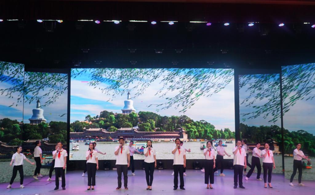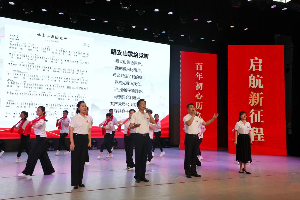 过去,红色音乐传递着革命的理想与信念;现在,红色音乐激励着共产党人永葆初心、牢记使命。8位党员教师带来了歌曲《让我们荡起双桨》,时而深情舒缓,时而高亢嘹亮,现场始终回荡着激荡人心的旋律,大家情不自禁地跟着合唱起来,脸上洋溢着喜悦的笑容。