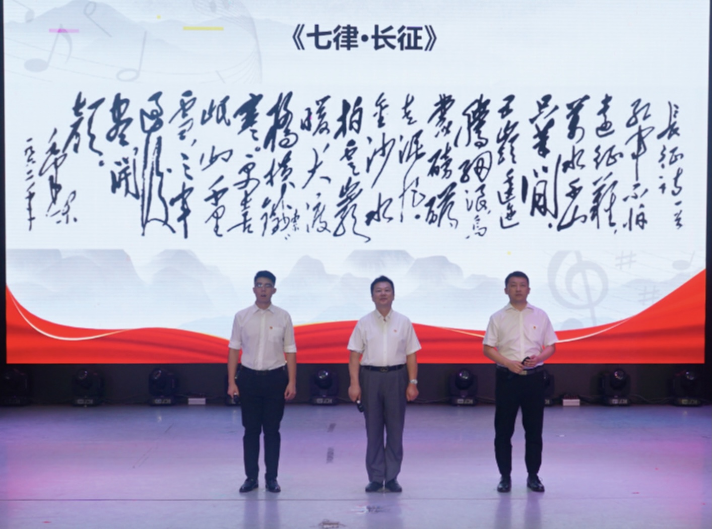 教师和学生代表为大家带来了《七律·长征》朗诵。该诗以凝练的语言、生动的比喻回顾了红军长征中的艰险历程,歌颂了红军长征的伟大壮举。表演教师以饱含激情的声音,传达了感党恩、跟党走的真挚情怀。