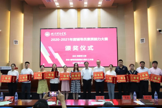 (党委书记徐雁冰为年度辅导员素质能力大赛获奖辅导员颁奖)