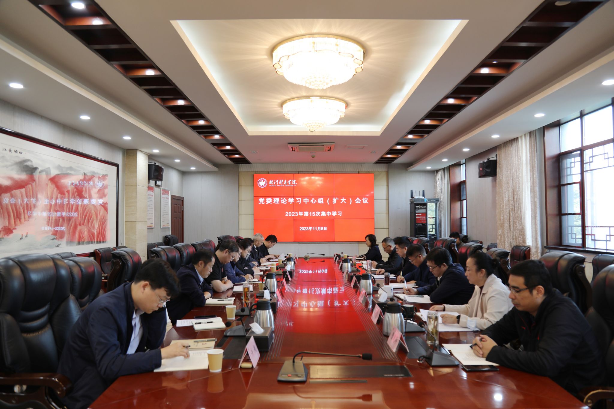 新闻网讯(通讯员张丹)11月8日,学校召开党委理论学习中心组2023年第15次集中学习会,专题研学习近平文化思想,传达学习习近平总书记近期重要讲话、重要贺信精神。党委书记陈继平主持会议并讲话。在校校领导,党委委员、党群部门负责人参加学习。