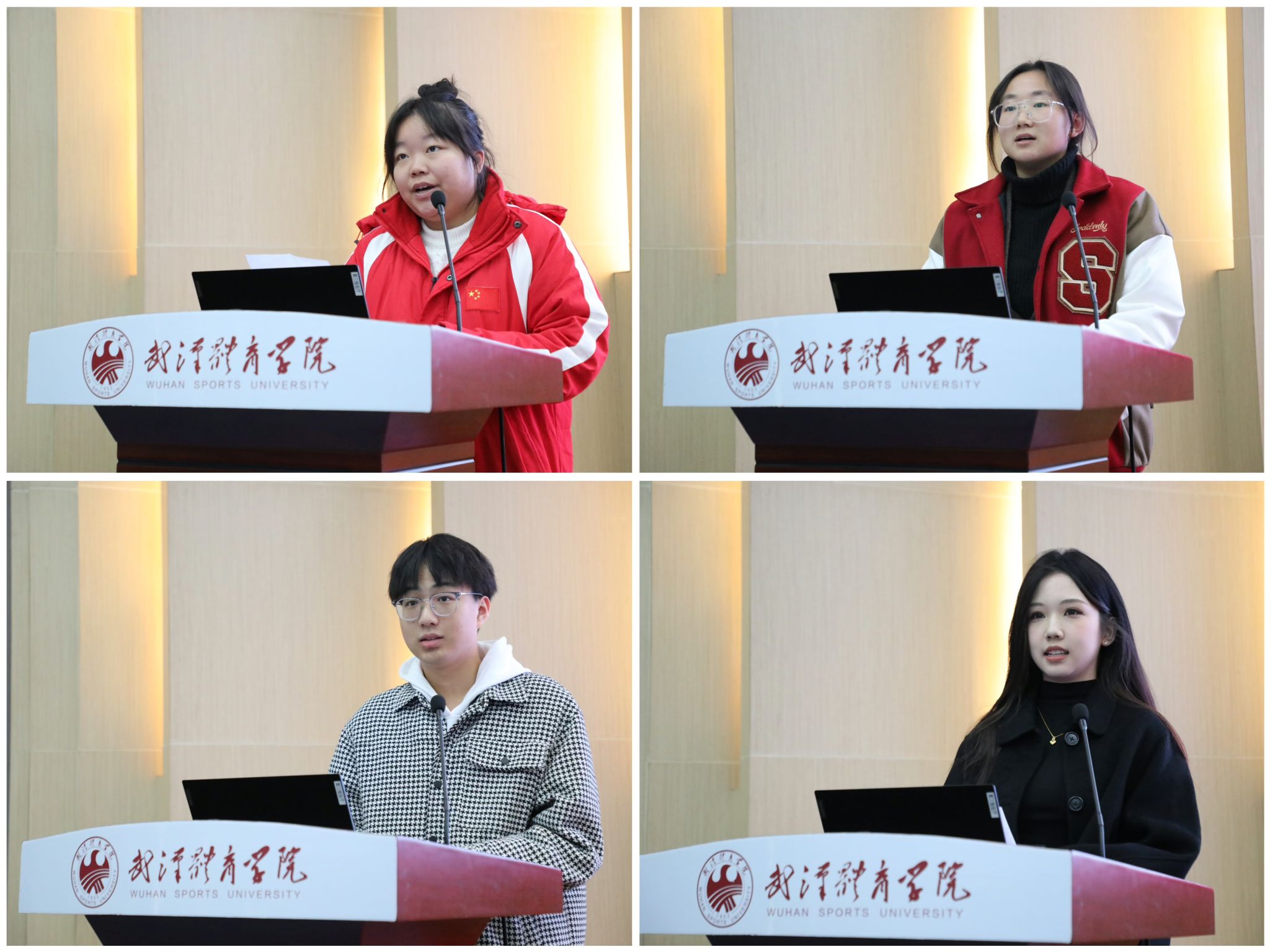 学校官方微信、官方微博、官方抖音、“武体之声”广播台等平台负责人先后上台作2022-2023年度工作总结。