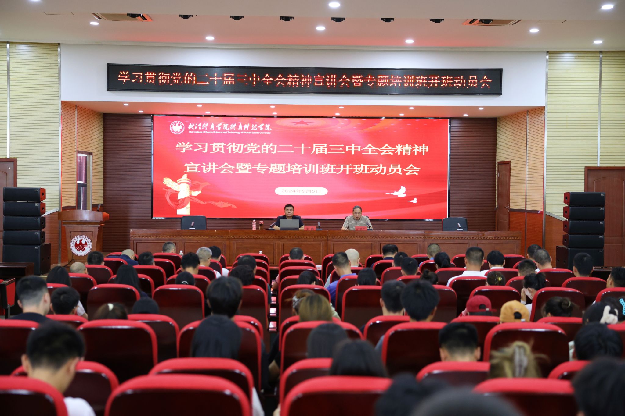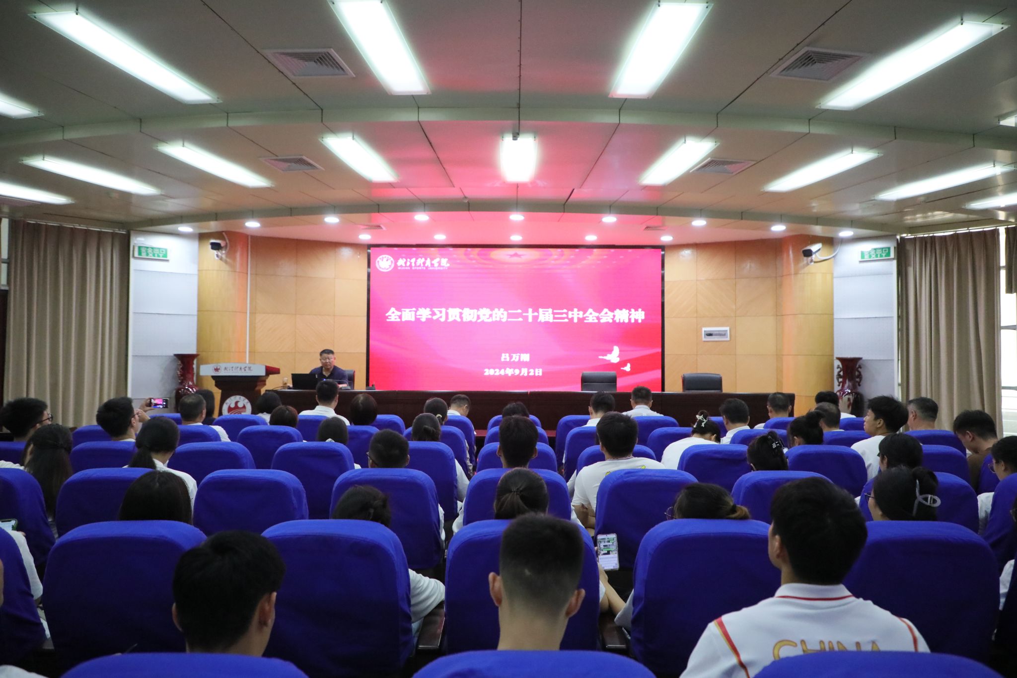 9月5日下午,党委副书记、副院长张飙为体育科技学院师生宣讲党的二十届三中全会精神。张飙深刻阐释了党的二十届三中全会的重大时代意义和深远历史影响,以及《决定》提出的总体要求和改革举措。他指出,要把学习宣传贯彻党的二十届三中全会精神作为当前和今后一个时期的重大政治任务,带头学、带头讲、带头干,切实把思想和行动统一到全会精神上来,当好忠诚拥护“两个确立”、坚决做到“两个维护”的排头兵;要把学习贯彻全会精神与推进当前各项重点工作结合起来,紧紧围绕推进中国式现代化进一步全面深化改革,守正创新,务实担当,持之以恒将全面深化改革进行到底,在新征程上谱写中国式现代化新篇章。