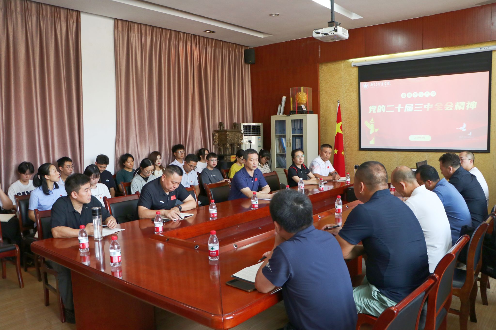9月6日上午,党委常委、副院长刘彦博为新闻传播学院、智能体育工程学院、党政办公室、党委教师工作部、人事处、总务处、后勤集团师生宣讲党的二十届三中全会精神。刘彦博围绕学习贯彻党的二十届三中全会精神,从改革开放和全面深化改革取得的重大成就、进一步全面深化改革的重大意义、目标定位和重大举措等方面,对全会精神进行了系统阐述。他指出,要以党的二十届三中全会精神为指引,深入学习领会贯彻习近平总书记关于全面深化改革的一系列新思想、新观点、新论断,结合工作实际,坚持党的领导、坚持以师生为中心、坚持系统观念和问题导向、坚持开放办学、坚持开拓创新,切实把学习成果转化为推动学校高质量发展的强大动力。