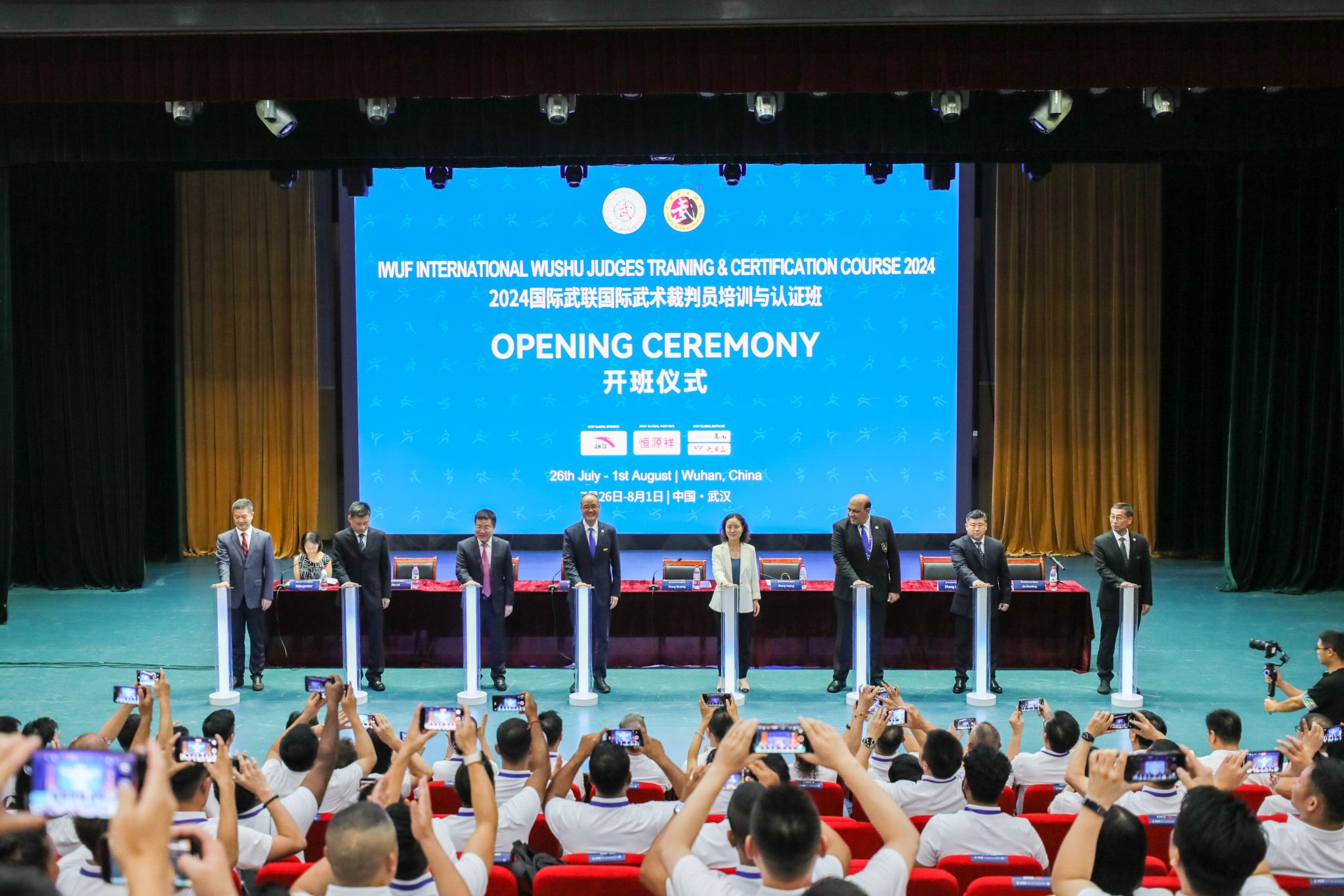 国际武术联合会秘书长张秋平,国家体育总局武术运动管理中心主任、党委书记,国家武术研究院院长张玉萍,武汉体育学院党委书记陈继平,国际武术联合会副主席、裁判委员会副主任谢里夫·穆斯塔法,国家体育总局武术运动管理中心副主任,国家武术研究院副院长李永强,湖北省体育局党组成员、副局长郑李辉,武汉体育学院党委常委、副院长朱磊,国际武联裁判委员会委员马库斯·阿尔维斯、郭伊万、古岱娟,培训班武术套路讲师林小美、高楚兰、刘志钢,培训班武术散打讲师赵斌、梁亚东、蔡清池,以及来自不同国家或地区的学员参加开班仪式。开班仪式由国际武术联合会裁判员委员会主任金肖冰主持。