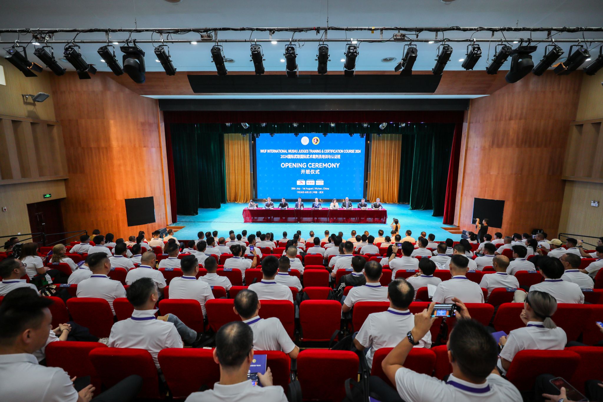 7月27日上午,由国际武术联合会主办、中国武术协会和武汉体育学院承办、武汉体育学院教育发展基金会协办的2024国际武联国际武术裁判员培训与认证班开班仪式在学校艺术馆小剧场举行。