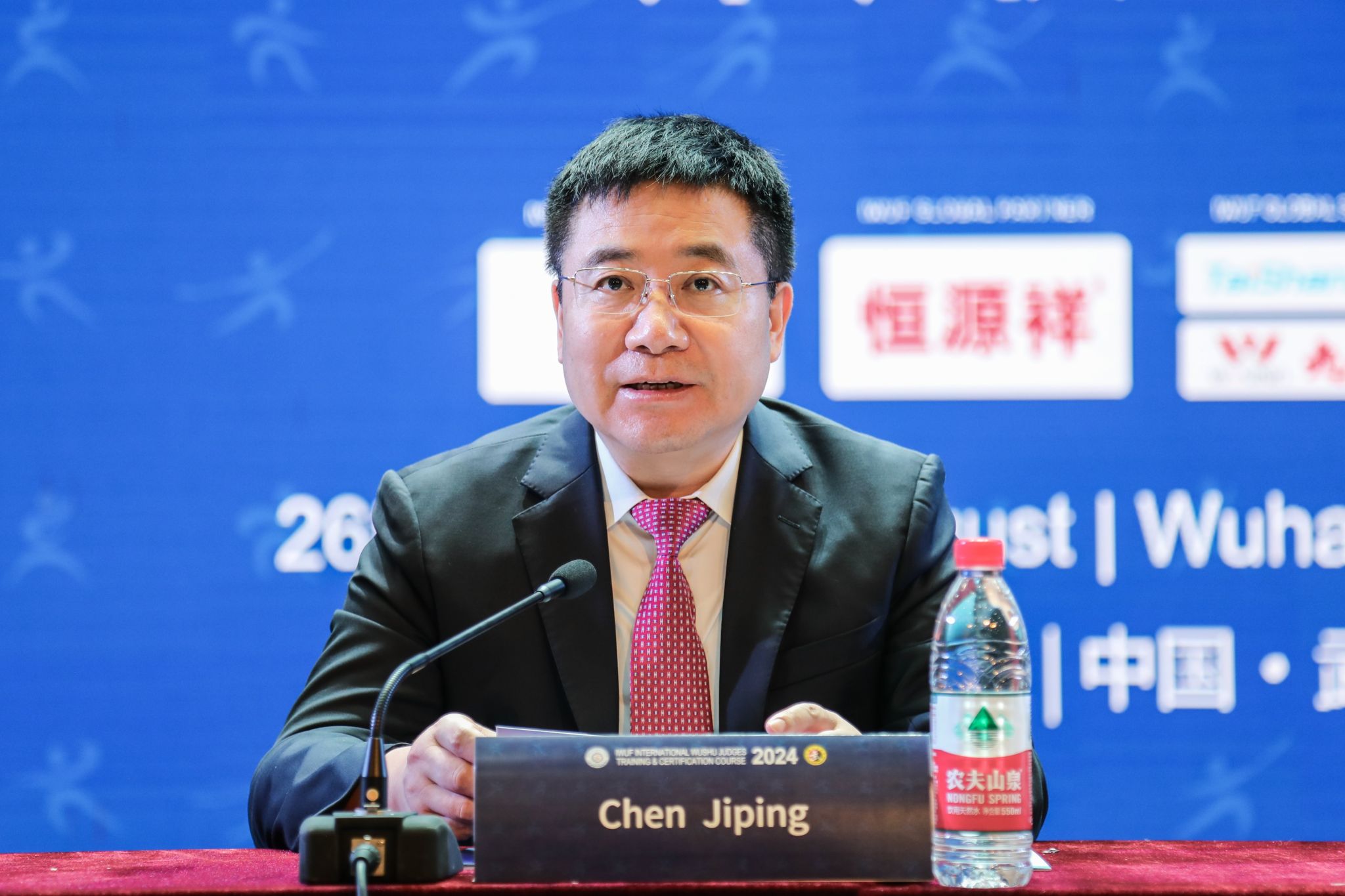 陈继平代表武汉体育学院致欢迎辞,并向参会人员介绍了武汉体育学院和学校武术学院的基本情况。他表示,建校以来,武汉体育学院始终扎根荆楚大地,以服务社会为己任,不断推动国际交流与合作。承办本次培训与认证班,是国际武联、国家体育总局对学校的信任和重托,更是学校向世界分享武术文化独特魅力的一次具体行动和生动实践。他希望,大家以此为契机,习武修德、以武会友,相互交流、相互借鉴、相互尊重、相互理解,同做武术人文理念的传承者、践行者、传播者,推动中华武术走向世界,为推动人类命运共同体构建做出积极贡献。