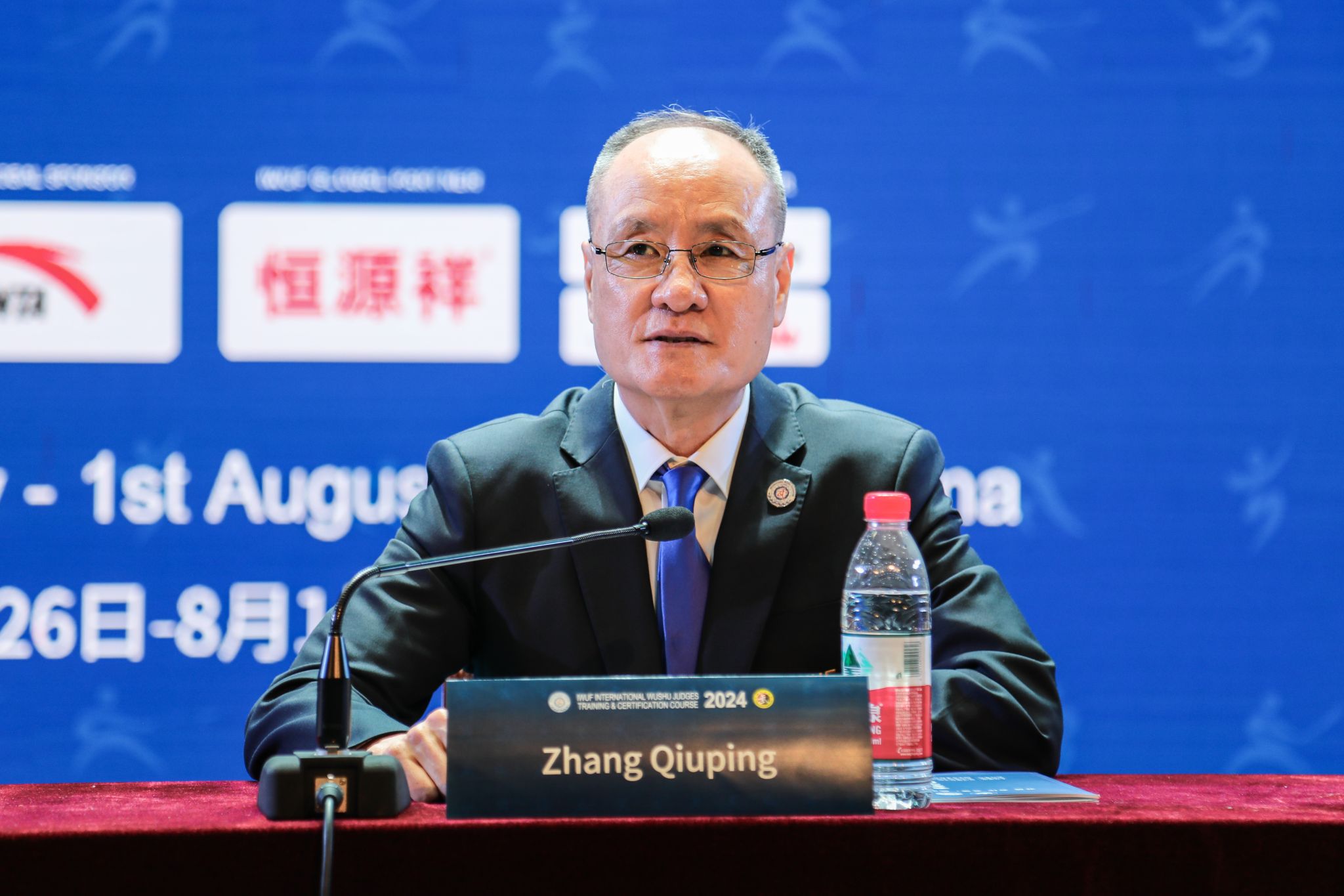 张秋平代表国际武联向参加培训的武术裁判员和同仁表示欢迎,向中国武术协会、武汉体育学院对本次培训班的组织协调表示感谢。他指出,武术作为中华民族的传统文化瑰宝,蕴含着深厚的文化底蕴和独特的东方智慧,如今在国际舞台上大放异彩。本次培训班共有来自26个国家或地区的94名学员参加,36名国内学员列席参会,旨在弘扬中华传统武术文化,培养更多优秀的武术裁判员,不断提高执裁能力和专业水平,做中华武术精神的传承者、践行者、传播者,共同推动武术运动在全球的普及和发展。
