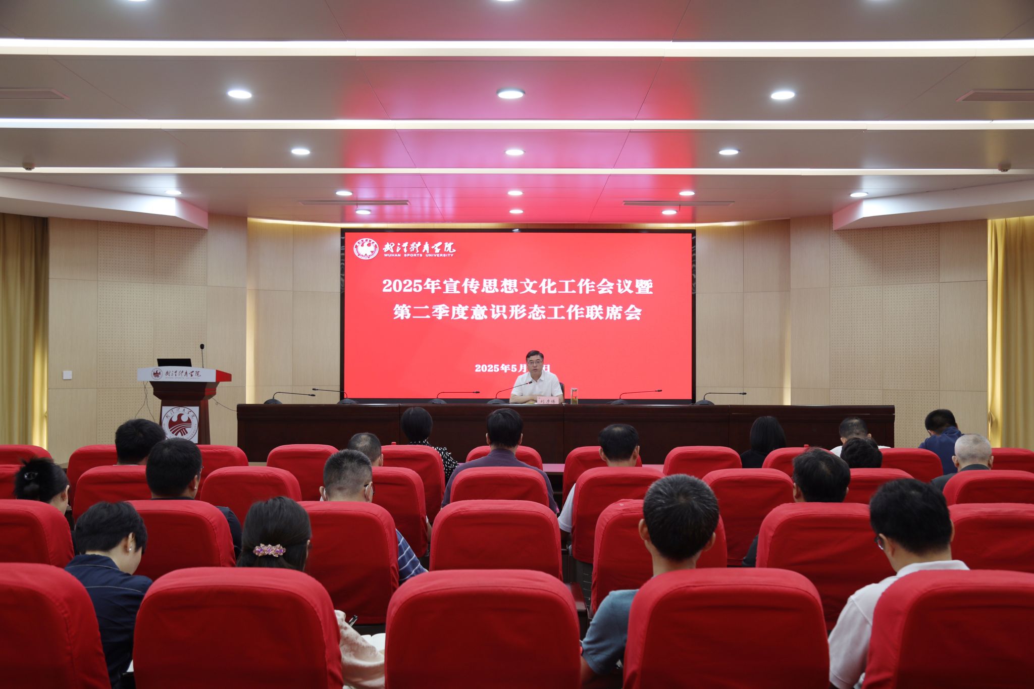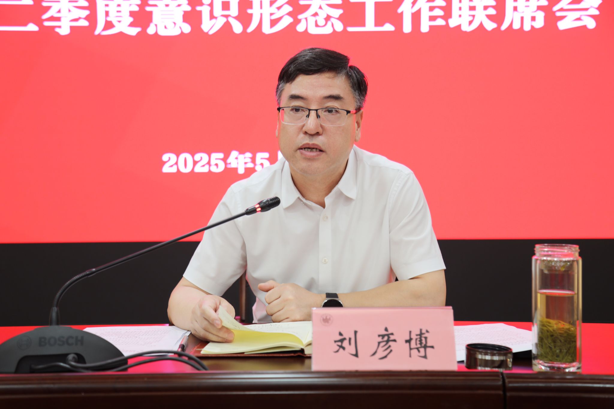 新闻网讯(通讯员张丹)为深入学习贯彻习近平文化思想,奋力开创学校宣传思想文化工作新局面,为推进“双一流”建设提供坚强思想保证、强大精神力量、有利文化条件,5月29日,学校召开2025年宣传思想文化工作会议暨第二季度意识形态工作联席会议。党委副书记刘彦博主持会议并讲话。