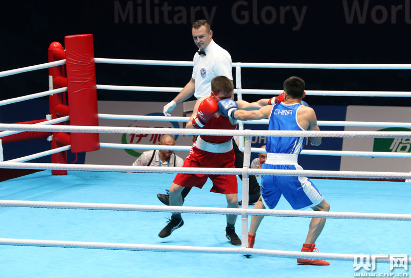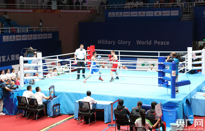 图为:10月19日,第七届世界军人运动会拳击比赛,男子56公斤级1/16预赛现场。央广网记者张卓 摄