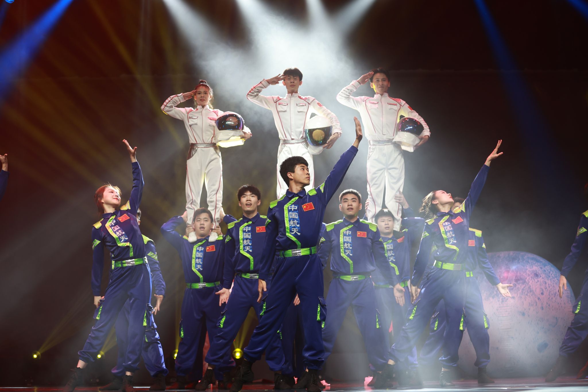操舞剧目《筑梦天空》的创编构思以神舟十三号成功发射为原型,以健美操、舞蹈啦啦操、技巧啦啦操为主要表现手段,通过“艰苦研发、火箭升空、太空遨游、成功着陆”四个部分,讲述了一代代航天人步履不停、脚踏实地,不断以中国速度创下航天事业发展新的里程碑故事。