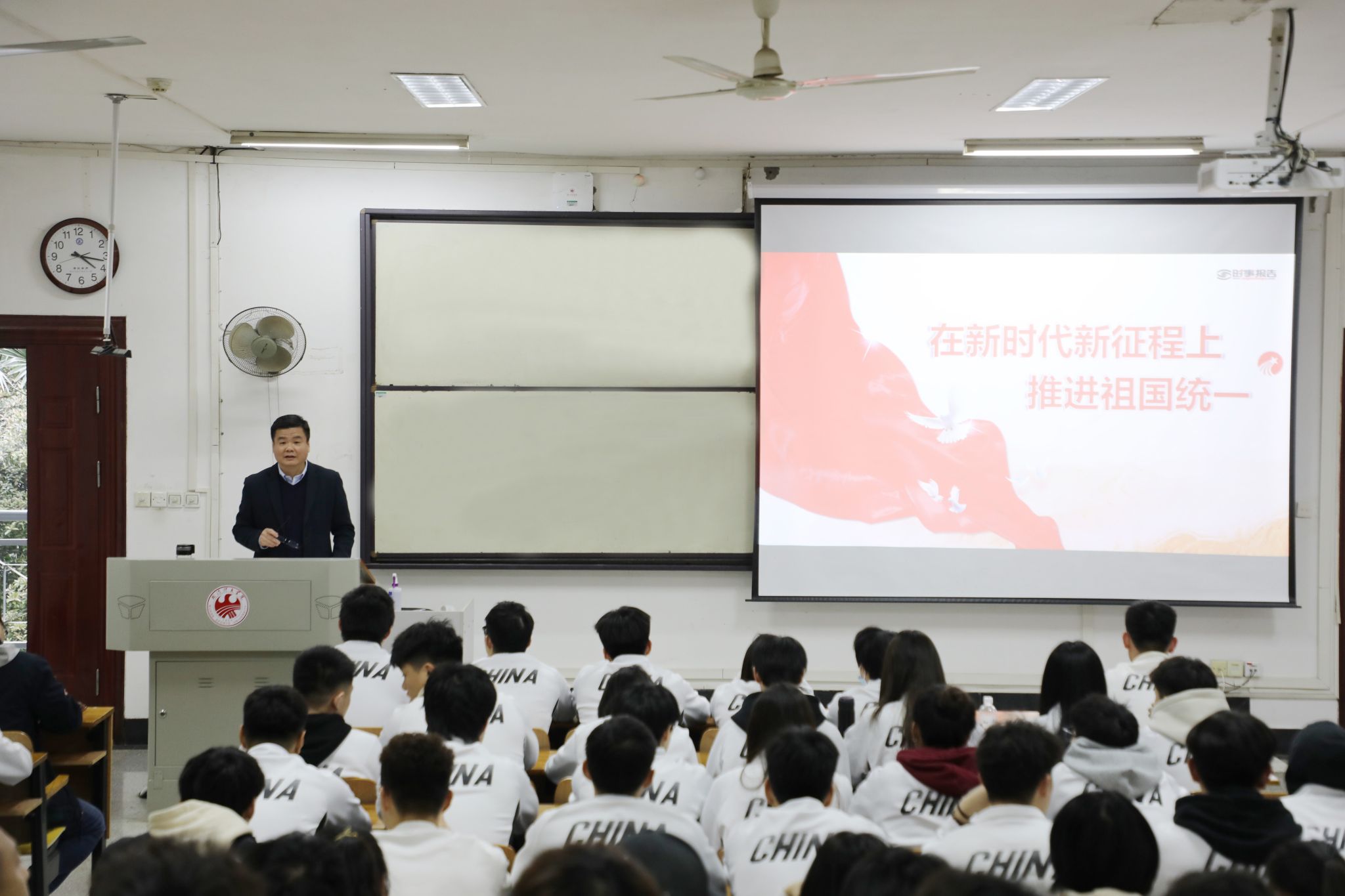 3月29日下午,党委副书记、副院长张飙为运动训练学院2021级本科生讲授“在新时代新征程上推进祖国统一”主题思政课。张飙从持续奋斗的光辉历程、不可阻挡的统一大势、与时俱进的行动纲领三个方面为同学们详细解读了新时代党解决台湾问题的总体方略。他勉励同学们要深入学习宣传贯彻党的二十大精神,牢记习近平总书记对青年一代的殷殷嘱托,时刻心怀“国之大者”,不断增强明辨是非的能力,持续锤炼成长成才的本领,在成长成才中为推进祖国和平统一发展做贡献,为民族复兴贡献青春力量。