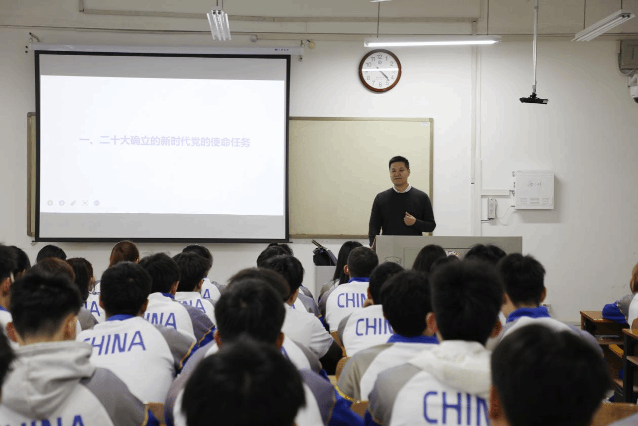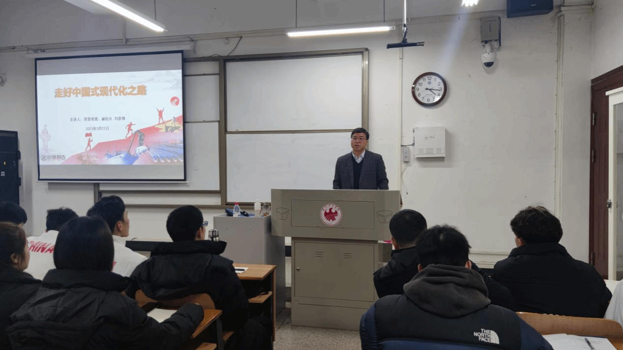 3月29日下午,党委常委、组织部部长潘高峰走进思政课堂宣讲党的二十大精神。他以《以中国式现代化全面推进中华民族的伟大复兴》为题,围绕“从二十大确立的新时代党的使命任务”“现代化与现代化国家”“中国共产党与中国式现代化的推进历程”“中国式现代化的内涵与阐释”“牢牢把握五大原则”五个方面展开,带领同学们一起回顾了中国共产党的发展历程,通过数据和事例阐释了党和国家的发展离不开一代代青年人。他勉励同学们要勤奋学习、刻苦训练,树立远大理想,担负起历史重任;要认真学习,练就过硬本领;要勇于奉献,在实践中开拓创新,为中华民族的伟大复兴贡献自己的力量。