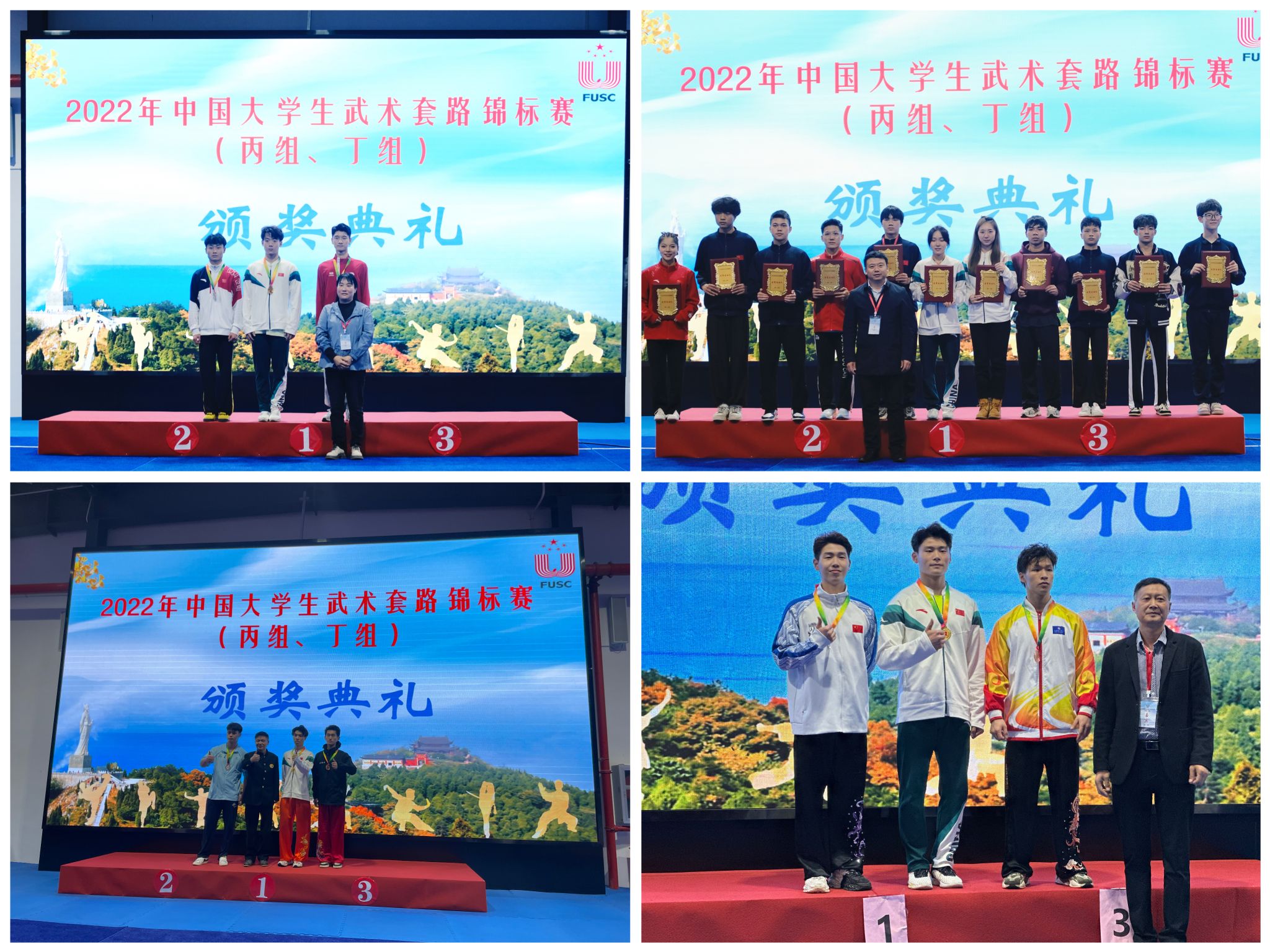 我校武术套路代表队团结进取、奋勇拼搏,取得4枚金牌、1枚银牌、3枚铜牌、15个前八名的优异成绩,学校获“体育道德风尚奖”,展现了学校师生奋发向上的精神风貌和专业一流的竞技水平。