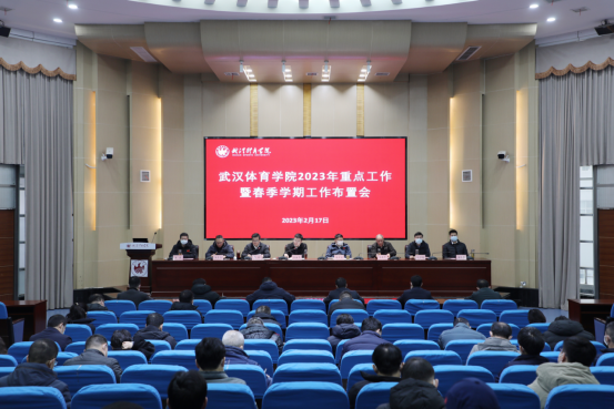 党委副书记、校长吕万刚对学校2023年重点工作及春季学期开学工进行全面部署。他指出,2023年是全面贯彻落实党的二十大精神开局之年,是学校建校70周年,是新一轮“双一流”建设的启动之年,也是推动学校“十四五”规划实施承上启下之年。新的一年,要以习近平新时代中国特色社会主义思想为指导,深入贯彻落实党的二十大精神和湖北省第十二次党代会精神,以政治建设为统领,全面贯彻党的教育方针,落实立德树人根本任务,深度融入教育强国、体育强国、健康中国国家战略和湖北发展大局,紧扣学校“十四五”事业发展规划确定的蓝图目标,紧抓“一流学科”突破和更名大学核心任务,巩固竞技体育传统优势,不断提升人才培养质量和办学综合实力,奋力谱写中国前列、世界一流应用研究型体育大学建设新篇章,以优异成绩绩庆祝学校建校70周年。