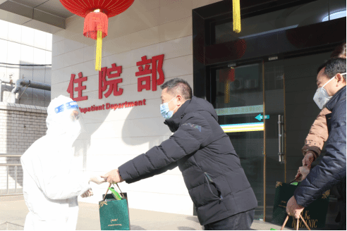 刘彦博、朱磊、潘高峰与坚守一线的工作人员亲切交流并发放慰问品,感谢工作人员坚守岗位、尽职尽责,保障了学校假期间的正常运转。