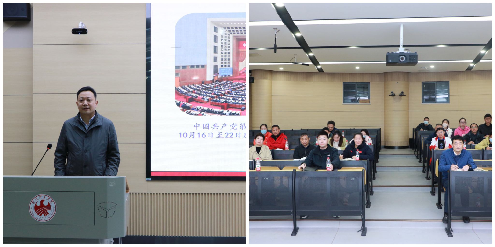 体育教育学院全体教师党员发扬“挤劲”“钻劲”,坚持“三个结合”,全面认真领悟党的二十大精神。一是坚持历史与现实相贯通。11月17日下午,体育教育学院在学院会议室举行学习贯彻落实党的二十大精神宣讲会,体育教育学院党委书记以“深入学习贯彻党的二十大精神在新时代新征程展现新担当新作为”为题讲授专题党课。二是坚持理论和实践相结合。体育理论教研室党支部书记分章节、有层次地精细化解读党的二十大报告内容,与会成员逐一谈感想,讲领悟,大家纷纷表示要坚守立德树人的初心使命,争做有理想信念、有道德情操、有扎实学识、有仁爱之心的“四有”好老师。三是坚持学习和思考相关联。体操教研室党支部书记和专项教师分别领学《习近平谈治国理政》第四卷、《高举中国特色社会主义伟大旗帜 为全面建设社会主义现代化国家而团结奋斗》,提出要用“九个深刻”进一步领悟与学习党的二十大精神。