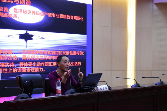 东北师范大学音乐学院教授委员会主任刘炼教授作《舞蹈编创思维如何培养》专题报告。他以“想象是核心,情感是动力”为中心,从“如何学会观察事物”“如何学会借鉴经典”“如何学会创造想象”“如何学会限制设定”四个方面讲解了舞蹈编创的宗旨与方法。