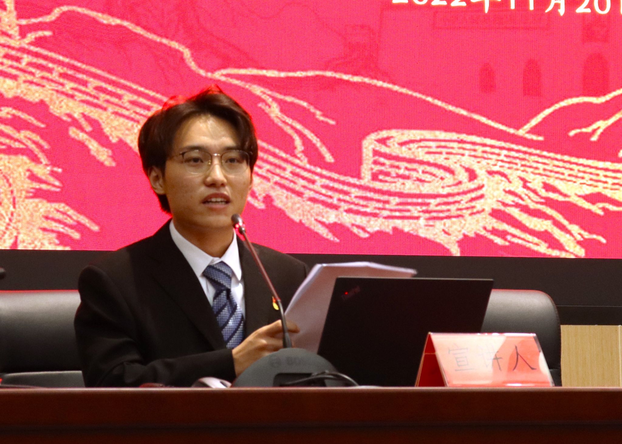 向可晗以“责任无比重大,使命无上光荣——从三个务必出发学习党的二十大精神”为题作报告。他从二十大报告中强调的“三个务必”为切入点,结合自身经历,谈到对务必不忘初心、牢记使命,务必谦虚谨慎、艰苦奋斗,务必敢于斗争、善于斗争的认识,他表示将以“三个务必”作为终身课题,回应时代呼唤,不负人民期待,为学校发展、为祖国富强贡献青春才智。