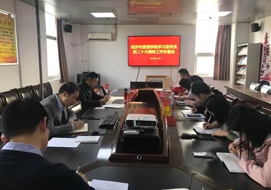 为全面深入学习领会党的二十大精神,扎实推进学习宣传贯彻工作,学院根据党中央统一部署和湖北省委、学校党委关于做好党的二十大精神学习宣传贯彻要求,结合学院实际,11月10日学院党委讨论通过了《经济与管理学院学习宣传贯彻党的二十大精神工作方案》。方案明确了学习要点、学习步骤、党组织和党员责任、实践工作任务、完成时限,确保学院学习宣传贯彻党的二十大精神取得扎实成效。