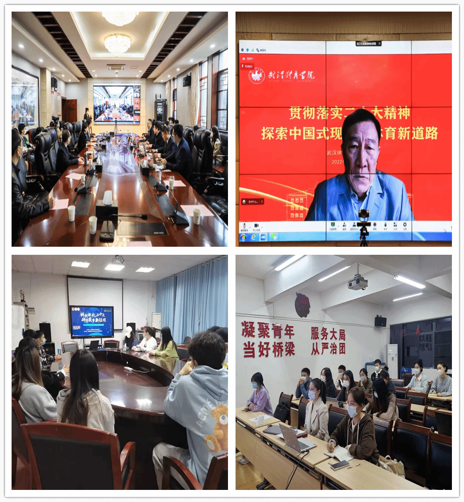 结合《武汉体育学院学习宣传贯彻党的二十大精神工作方案》要求,机关各支部联系部门实际,纷纷开展丰富多彩的二十大精神学习活动。办公室支部开展了“牢记使命 开创未来”主题演讲选拔赛。期刊社支部于10月29日主办了“贯彻落实二十大精神,探索中国式现代化体育新道路”的专题论坛,邀请了来自全国的24名高校领导、专家学者进行学术报告和点评,形成了丰富的研讨成果。图书馆支部组织以“奋进新征程,扬帆新时代”为主题的第四届“书香汇”知识竞赛。学工部支部联合校团委组织由辅导员代表、团干部、青年典型等组成的二十大宣讲团,深入学生基层一线宣讲二十大精神;组织辅导员专题学习研讨并交流学习体会;开展“学习二十大,奋进新征程”为主题的辅导员素质能力大赛之主题班会比赛。校团委支部组织开展以“科创献礼二十大,研学筑梦新征程”为主题的2022年挑战杯学术文化月系列活动,举办“学习党的二十大精神座谈会”。