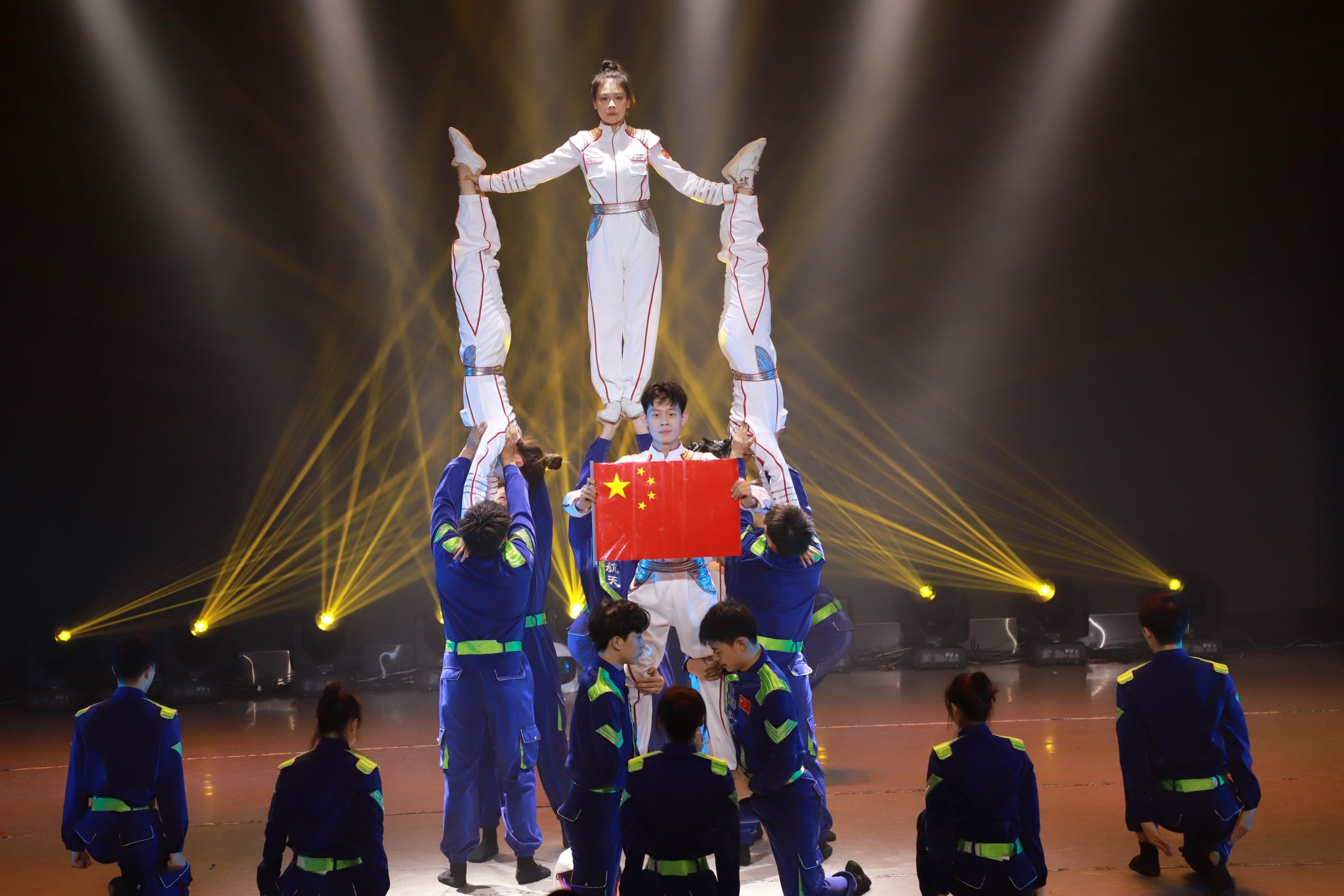 从“两弹一星”到“载人航天”,几代航天人用他们的艰苦创业、无私奉献和自主创新的精神,创造出了中国辉煌的航天成就,实现了中华民族伟大复兴,是中国自近代以来最伟大的梦想。啦啦操专项学生精心编排的节目《逐梦天空》带领大家回顾中国航天事业经历了从无到有,由弱到强的发展历程。