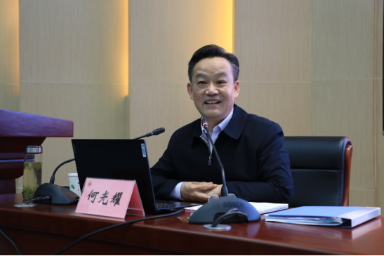 13日下午,湖北省委党史研究室何光耀主任作“举旗定向的政治宣言 引领复兴的行动纲领”专题报告。他从全面学习二十大精神、深刻把握二十大精神的核心要义、认真落实二十大精神的实践要求三个方面深入解读了党的二十大精神,特别是在如何深刻把握党的二十大精神核心要义上,何主任从“七个深刻把握”角度,进行了生动诠释,勉励大家始终同以习近平同志为核心的党中央保持高度一致,做“两个确立”“两个维护”的坚定捍卫者,坚持自我革命永葆共产党员的政治本色,在谱写中国式现代化荆楚篇章中建功立业。