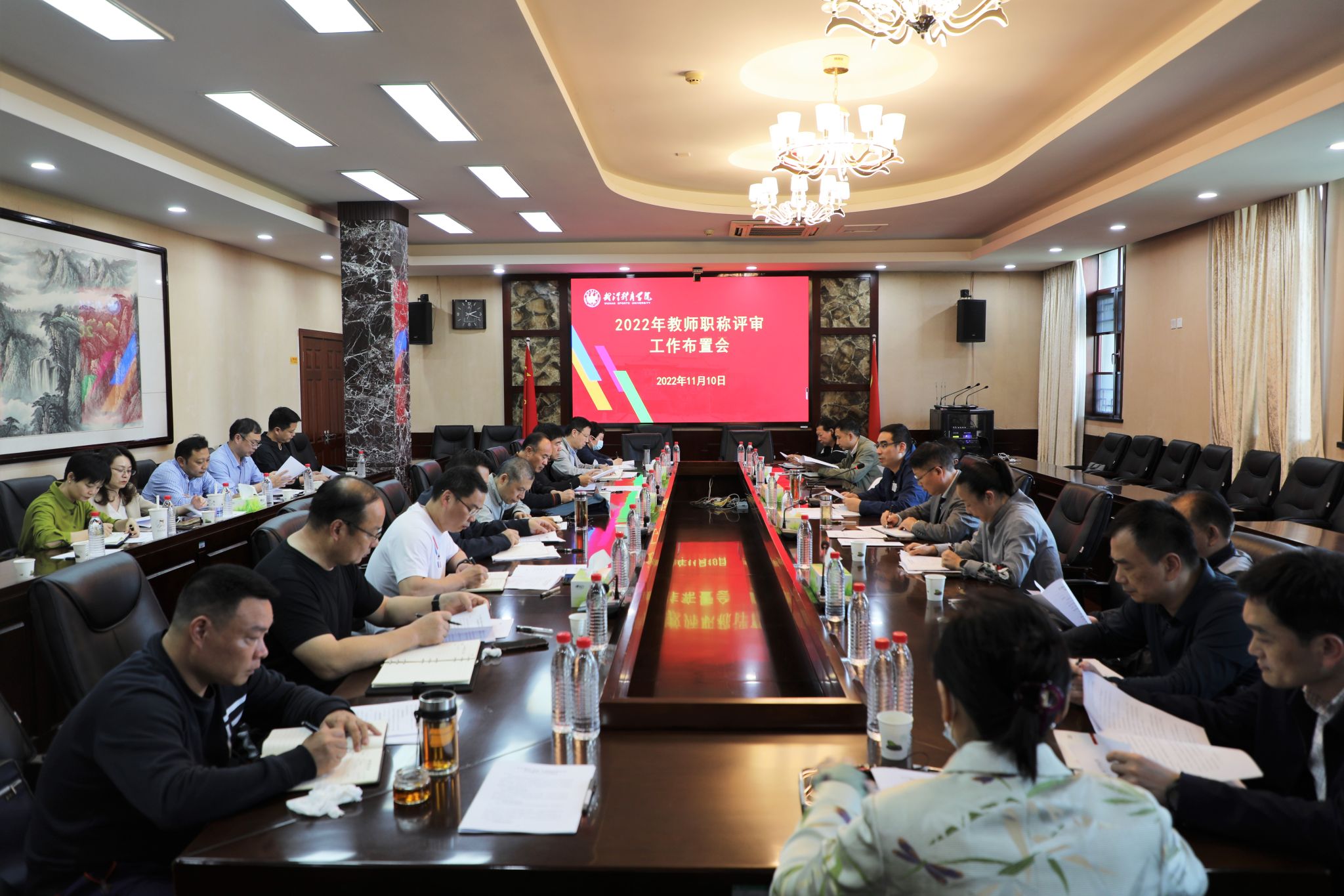新闻网讯(通讯员向阳)11月10日下午,我校在行政楼411会议室召开2022年教师职称评审工作布置会。校长、职称评审工作领导小组组长吕万刚参加会议并讲话,学校相关职能部门负责人及各学院党政主要负责人参加会议。