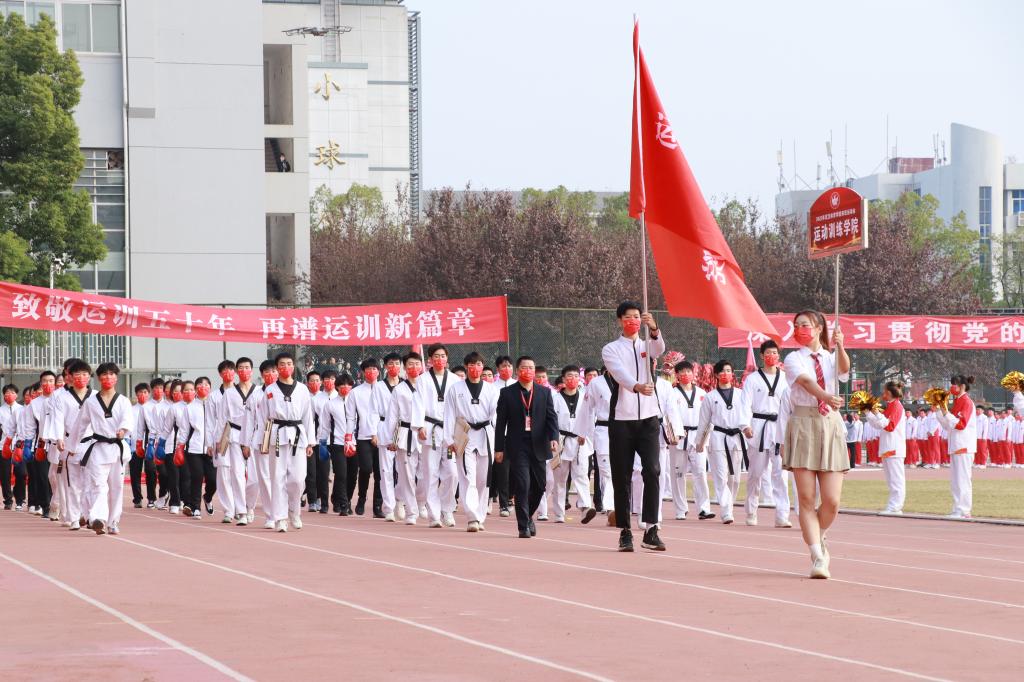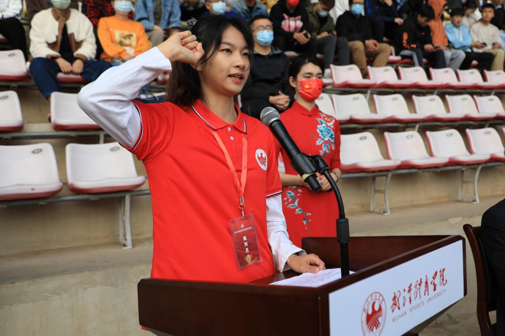 8:30,伴随着激昂的乐曲,各学院方阵代表队依次入场,2022年武汉体育学院田径运动会开幕式拉开序幕。