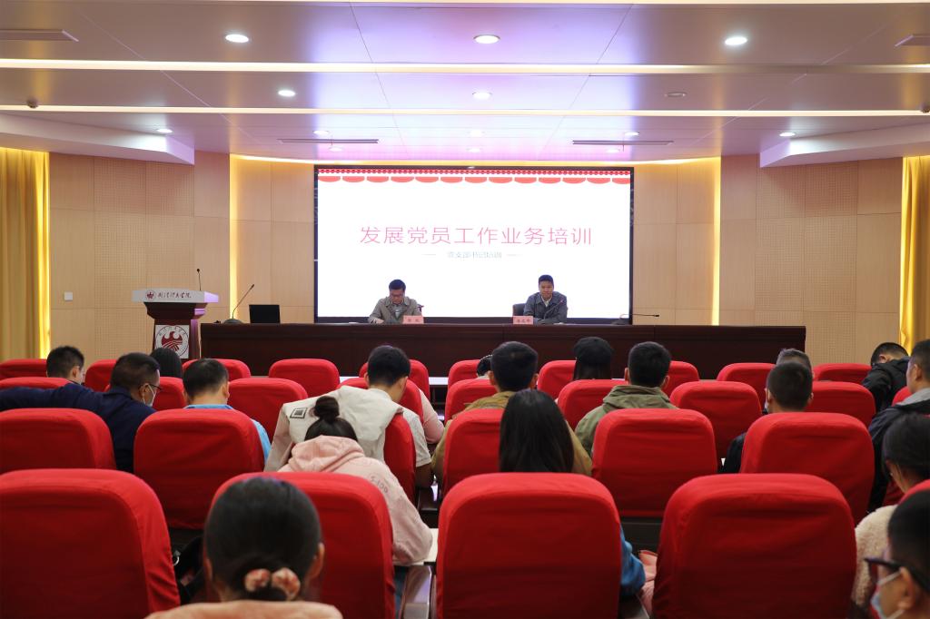 张飙指出,发展党员工作是党的基层组织的一项经常性工作,是加强党的建设的一项重要任务。全体学生党支部书记、辅导员要通过培训进一步提高政治站位和思想认识,增强做好党建工作的责任感和使命感。他强调,一是要充分认识发展党员工作的重要意义,严把发展党员入口关,切实维护发展党员工作的严肃性;二是要准确把握发展党员工作程序,做到责任明确、重点突出、坚持标准;三是要严格遵守发展党员工作纪律,保证新党员的质量,杜绝违规违纪行为出现,对党员发展工作实行全程责任追究。