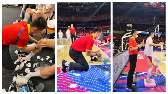 跟队期间,张亚峰协助女篮队员进行运动前后拉伸,并对运动员赛前、赛中、赛后可能出现的肌肉酸痛、拉伤、痉挛,关节疼痛、肿胀、踝部扭伤等不适进行有效预防、及时评估与康复治疗。张亚峰对每一位运动员的伤病情况和恢复状况都了然于心,并能根据队员训练强度的变化,及时调整保障服务方案,用自己的专业技能助力中国女篮勇夺亚军。