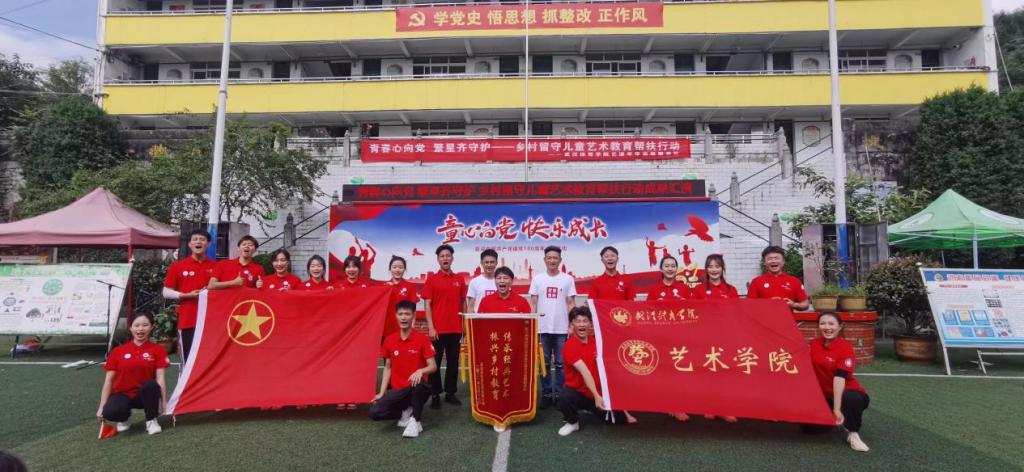 “繁星筑梦”——乡村留守儿童艺术帮扶志愿项目由艺术学院发起。该项目秉持以“舞蹈助力农村留守儿童快乐成长”为愿景,实施“线下+线上”双轨并行美育帮扶新模式,截至目前已为6所偏远乡村学校,2600余名留守儿童开展啦啦操、体育舞蹈、民族舞、校园舞等艺术舞蹈美育课程。团队组织构建完备,核心成员20余人,参与志愿者达2845人次,服务总时长达2万余小时,并获得学习强国、中华网、湖北日报等26家主流媒体累计报道70余篇,累计点击量达3万余次,团队成员为乡村留守儿童赋予动能、教授技能,成就舞蹈梦。