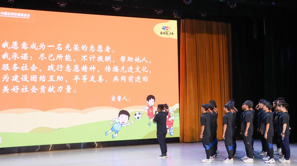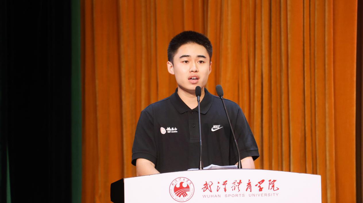 足球学院2019级学生岳佳明作为志愿者代表发言