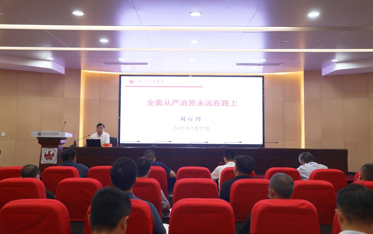 新闻网讯(通讯员王婷)为贯彻落实全面从严治党要求,纵深推进“清廉武体”建设,9月22日上午,党委常委、副校长刘彦博以“全面从严治党永远在路上”为主题讲授廉政教育专题党课。党政办公室、人事处、总务总支(总务处、后勤集团、银湖公司)、新闻传播学院、体育工程与信息技术学院班子成员、党员干部、教师和辅导员参加学习。