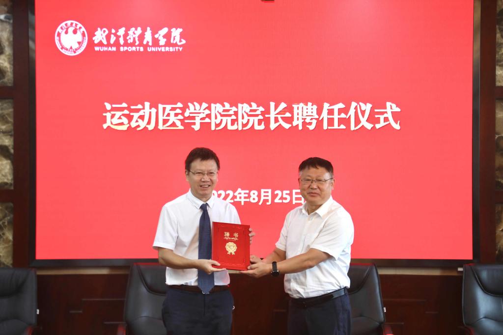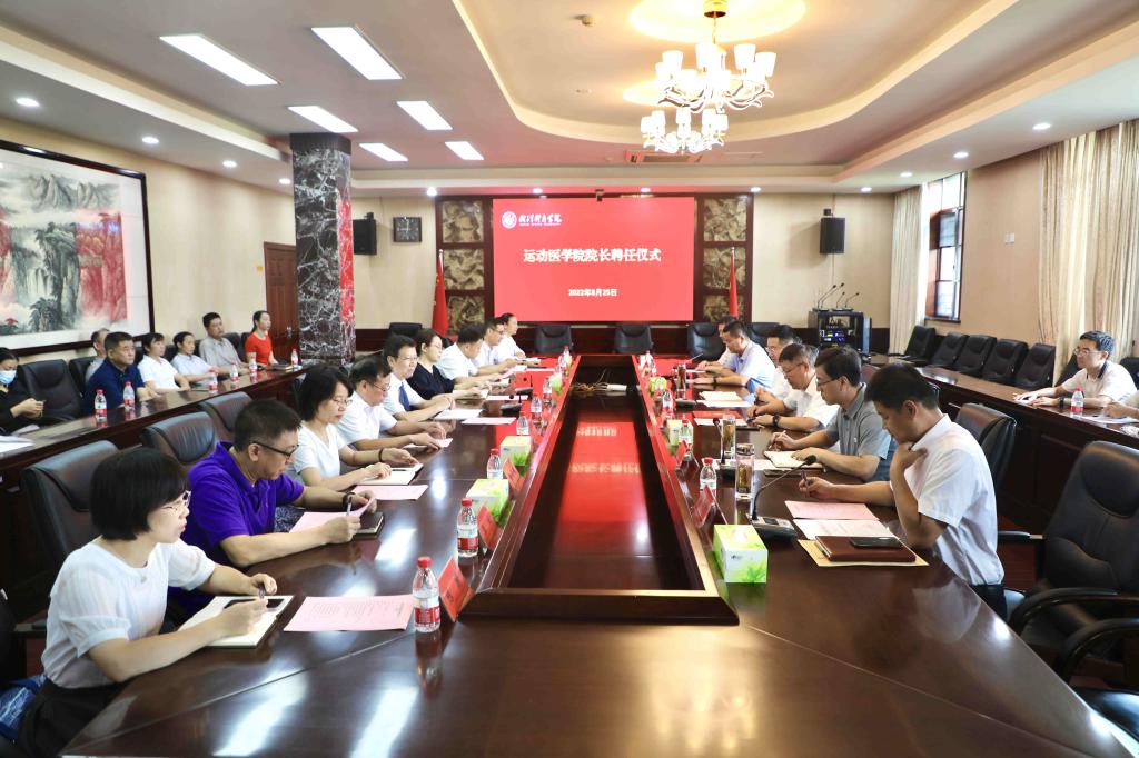 人事处、发展规划与学科建设处、科研处、教务处、研究生院等部门负责人、运动医学院全体班子成员及教师代表参加聘任仪式。