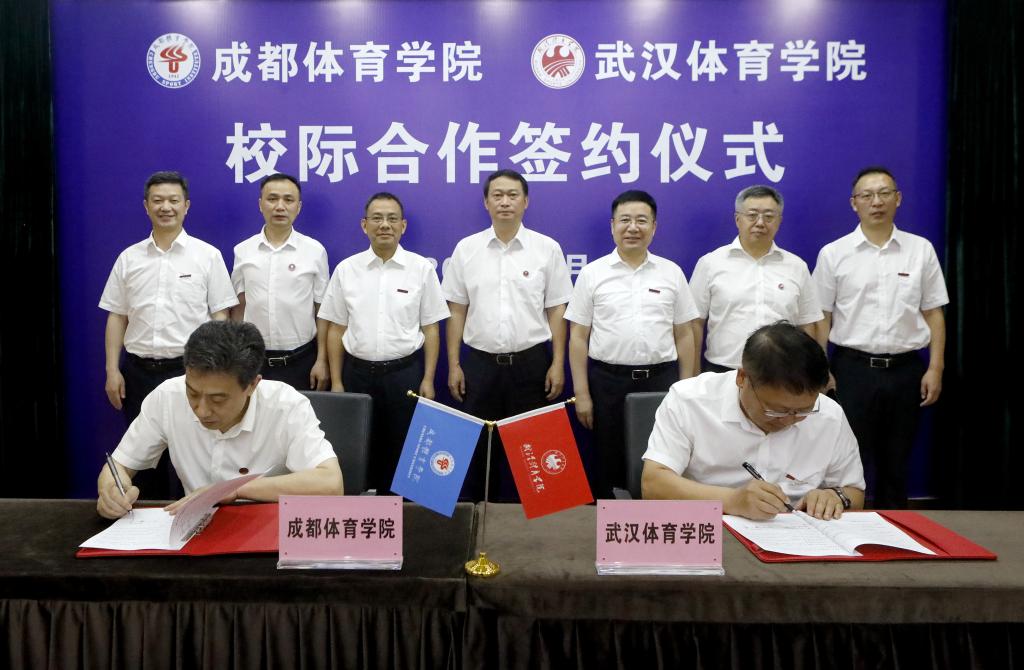 7月2日,党委书记陈继平,党委副书记、校长吕万刚,党委副书记、副校长漆昌柱,党委常委、副校长王志强、朱磊一行赴成都体育学院考察交流。成都体育学院党委书记舒为平,党委副书记、校长潘小非,党委常委、副校长罗加福、何本祥热情接待。