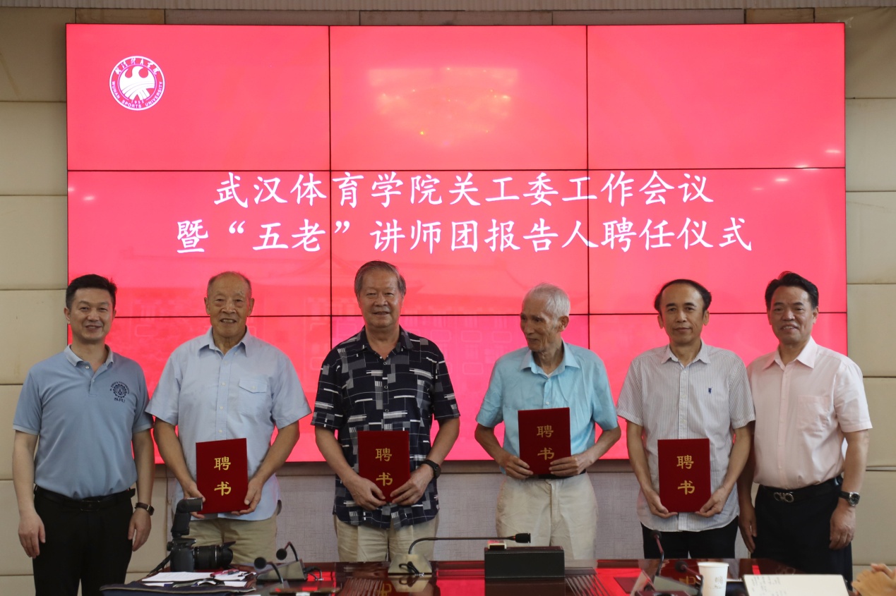 6月28日下午,武汉体育学院关工委工作会议暨“五老”讲师团报告人聘任仪式在行政楼315会议室举行。党委常委、副校长、关工委主任朱磊出席会议。会议由武汉体育学院关工委副主任翟廷立主持。