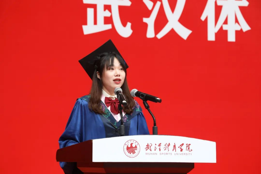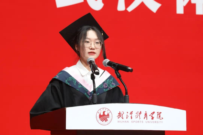 经济与管理学院学生林舒婷作为硕士毕业生代表分享了自己在学校学习生活的感触和体会。她表示,学生时代的完结并不代表着学习生涯的结束,武体学子理应是不乏对生活的热情与从头再来的勇气。希望大家无论是走上了工作岗位,还是继续深造,都能带着武体人拼搏的精神和信念,依旧以饱满的热情为心中所爱冠以殊荣,在高山峻岭中寻得生机。