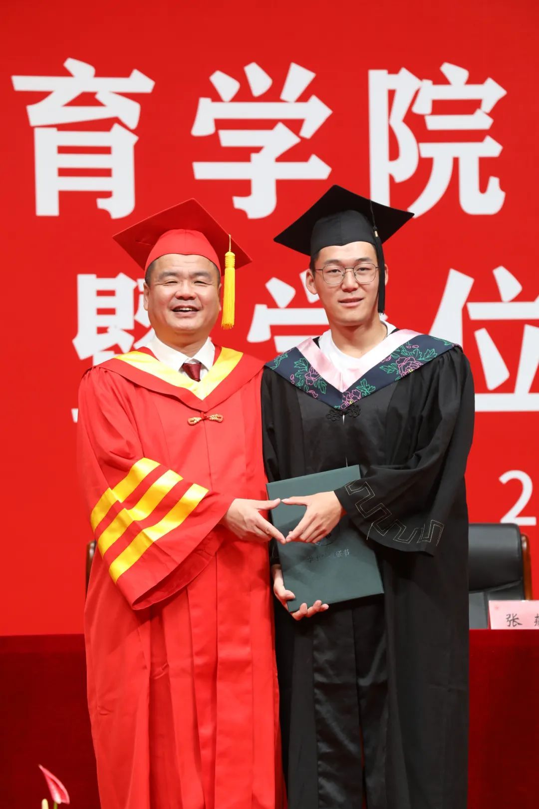 运动医学院学生康子馨作为本科毕业生代表发言,她说,犹记得初入校园,大家想象着未来的无尽可能,兴奋又带着几分不安。如今站在毕业的路口回望,大家一路探索,努力成长。作为即将离开校园、走向社会的毕业生,要厚植家国情怀、涵养进取品格,立志做有理想、敢担当、能吃苦、肯奋斗的新时代好青年,不负时代,不负华年,怀着赤子之心、向着人生理想,阔步向前,让青春在全面建设社会主义现代化国家的火热实践中绽放绚丽之花。
