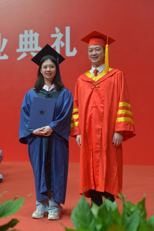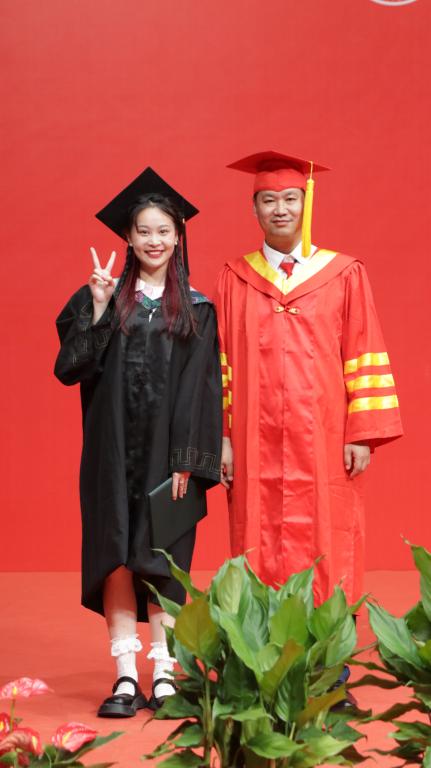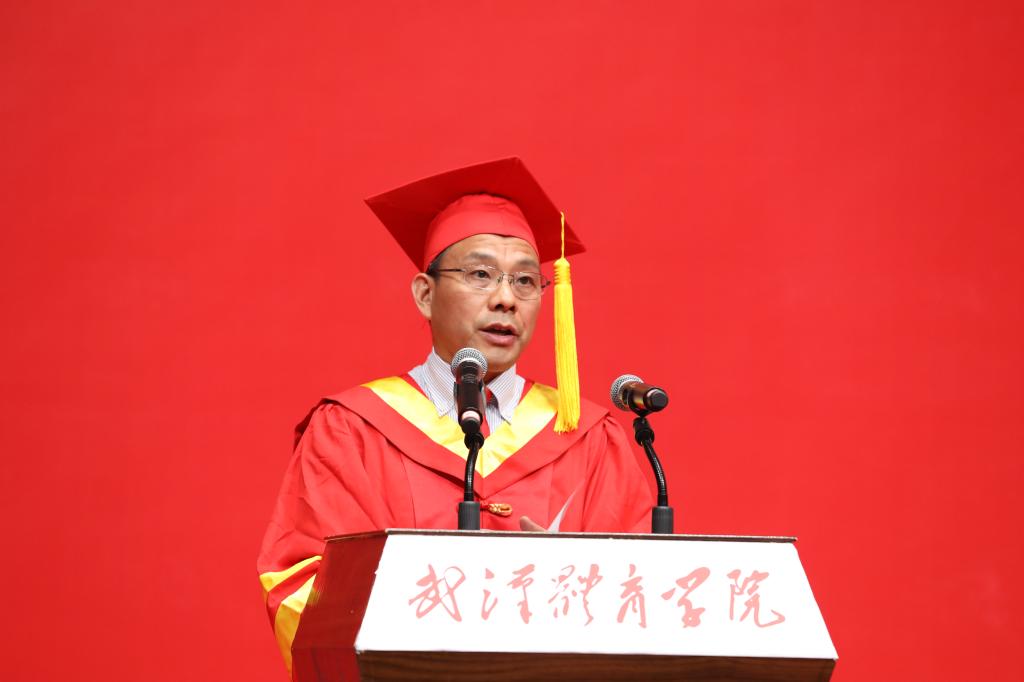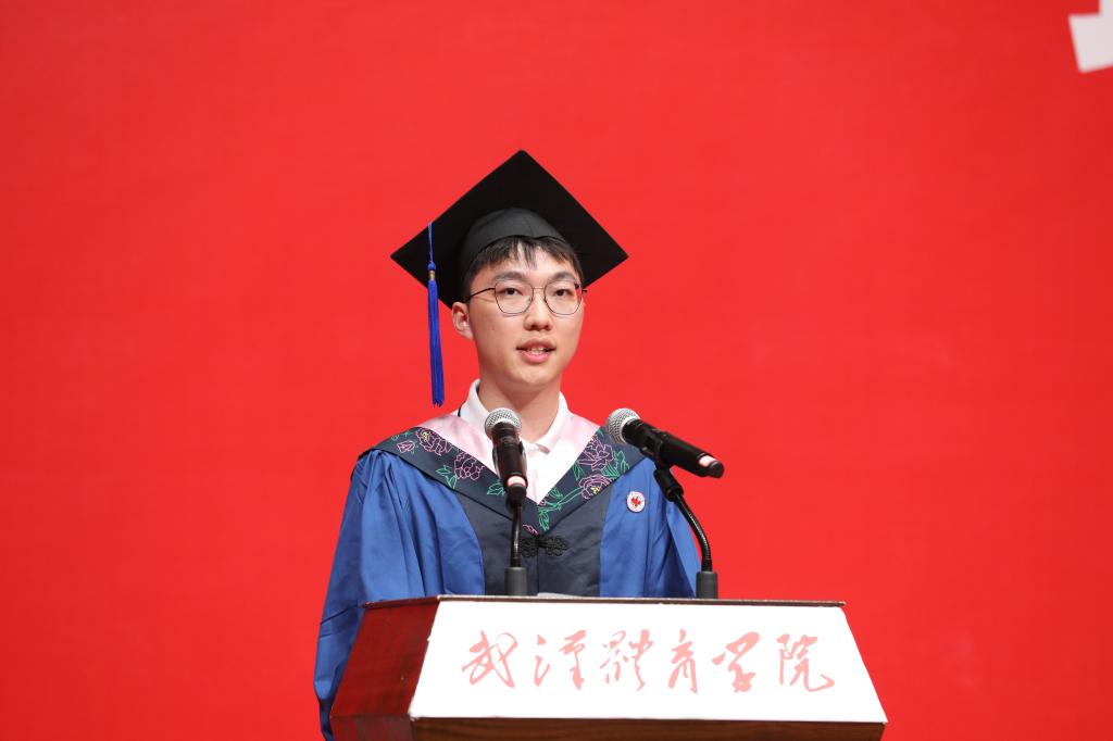 2019级运动人体科学专业的硕士研究生李自栋代表硕士毕业生发言。他讲述了自己在老师们的悉心指导、同窗同门的鼓励陪伴下成长与收获的故事,表达了对母校的感激之情。他说,在武体求学的七年时光里,自己习得了专业知识,明确了目标方向,见证了学校的点滴发展,也成就了更好的自己。李自栋希望大家能够培养知重负重的胆魄、磨练善作善成的功夫,在新的起点上带着“公勇诚毅,学思辨行”的校训精神,踔厉奋发,笃行不怠,为实现中华民族伟大复兴的中国梦贡献青春力量!