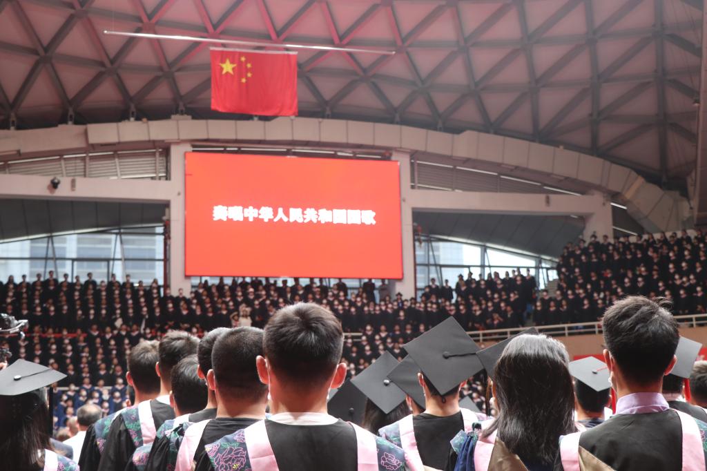 毕业典礼暨学位授予仪式在雄壮的国歌声中拉开帷幕。