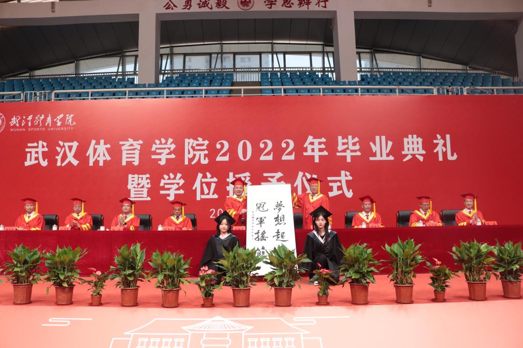 6月27日上午,武汉体育学院2022年毕业典礼暨学位授予仪式在体育馆隆重举行。校党委书记陈继平,党委副书记、校长吕万刚,党委副书记、副校长漆昌柱,党委常委、纪委书记、监察专员朱建中,党委常委、副校长张飙、王志强、刘彦博、朱磊,党委常委、组织部部长潘高峰,各部门、各学院主要负责人,教师代表,校友代表参加仪式,3000余名毕业生深情告别母校,迈上人生新征程。