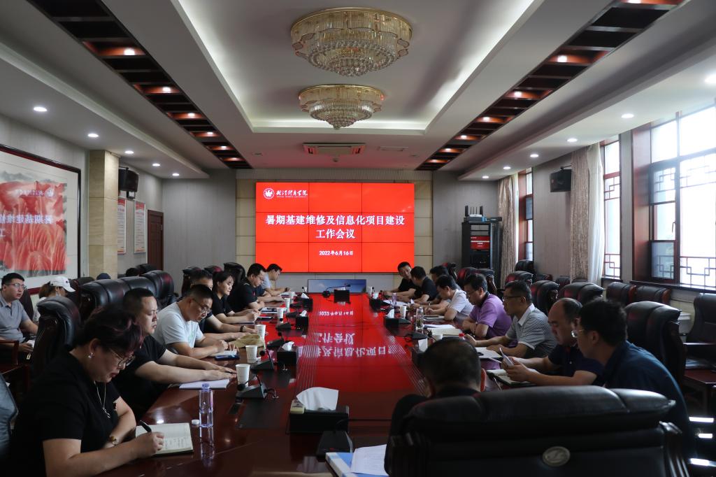 总务处负责人分别介绍了暑期集中施工的基建维修及信息化建设项目,包括新建研究生公寓、2022届毕业生宿舍维修及配置家具、5栋—6栋学生公寓公共卫生间维修改造、湖边网球场维修改造等基建维修项目,以及校园网基础设施改造(二期)工程、东教学楼及图书馆云桌面系统项目、校园出入管理系统项目等。参加会议的相关部门负责人结合部门职责任务对高质量、按进度推进暑期项目建设提出意见、建议。学生代表对宿舍、篮球馆维修等事项提出了具体意见。