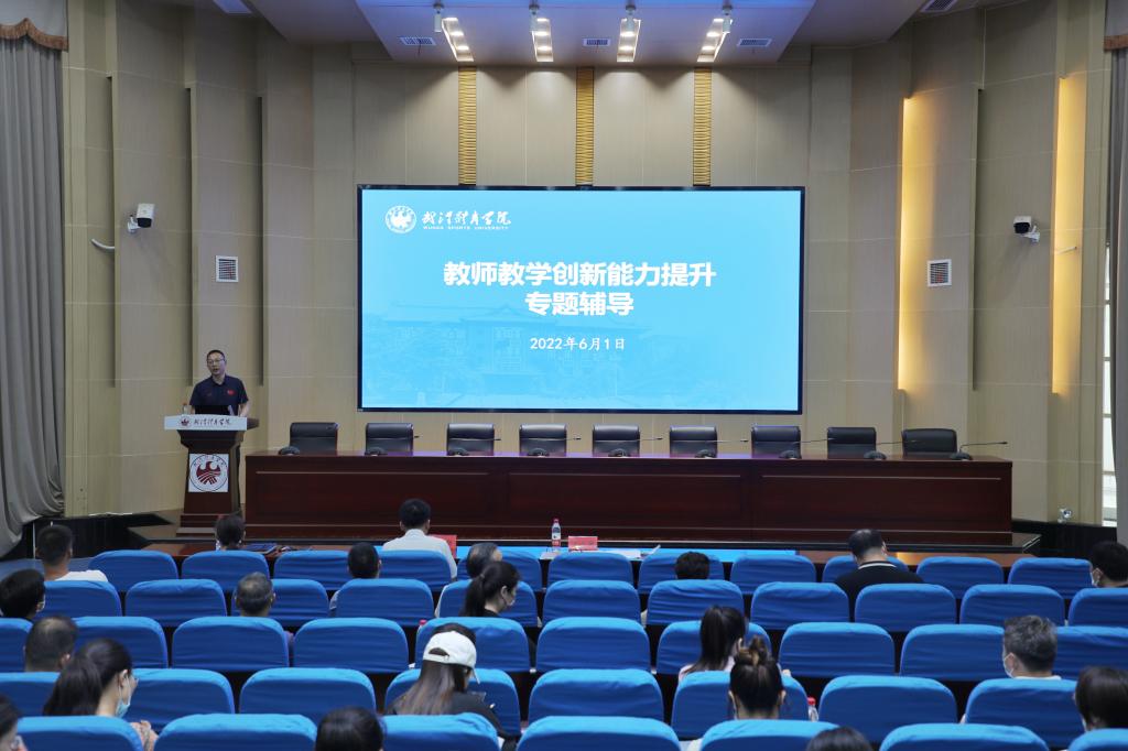 6月1日下午,我校于东教学楼四楼第三报告厅开展教师教学创新能力提升专题辅导。本次专题辅导特邀全国首届高校教师教学创新大赛一等奖获得者湖北工业大学李扬教授为主讲嘉宾。辅导报告由党委常委、副校长王志强主持。