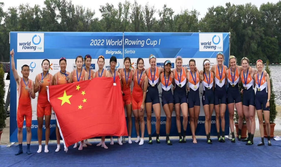 此次比赛,孙宁与队友齐心协力、奋勇拼搏代表国家夺取了2022年赛艇世界杯女子八人单桨的银牌,展现了我校运动员的良好风貌。