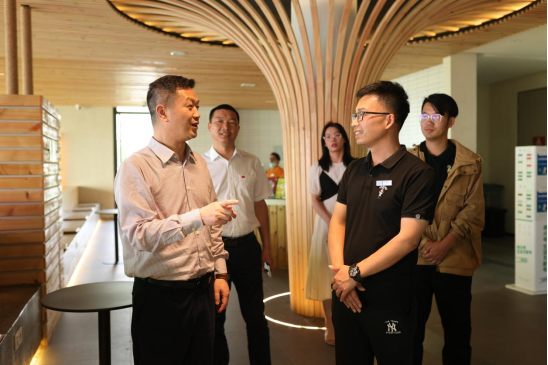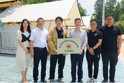朱磊一行实地参观了沙滩户外露营项目,并为武当山国际武术学院在武汉一直户外文化传播有限公司的实习实训基地揭牌。