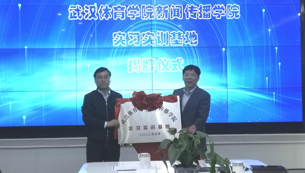 交流会后,刘彦博与杨平为新闻传播学院在襄阳广播电视台的实习实训基地揭牌。