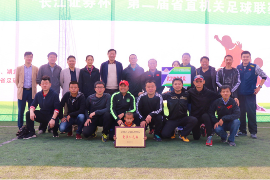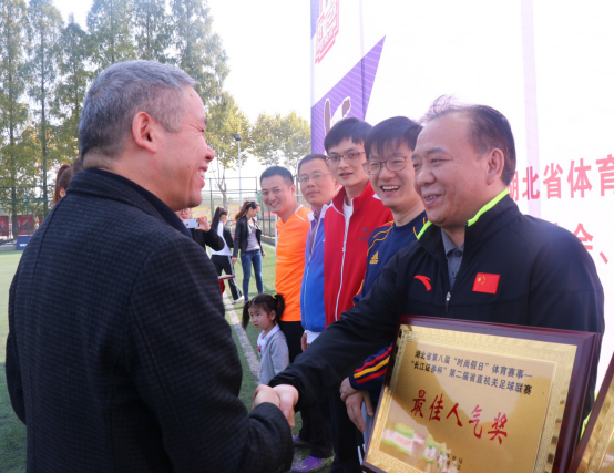 2017年11月4日,湖北省第八届“时尚假日”体育赛事-“长江证券杯”第二届省直机关足球联赛闭幕式暨颁奖仪式在武汉体育学院湖边足球场举行。赛事由省体育局与省体育总会主办,省足协、武汉体育学院等单位协办。省体育局足球管理中心宋立军主任、省体育局群体处陈飞东调研员、武汉体育学院王志强副校长、机关党委吕玲书记、竞赛与场馆中心程序处长、校工会雷海林副主席、以及相关单位负责同志出席此次颁奖仪式。