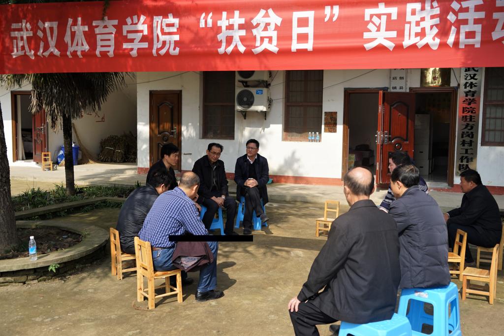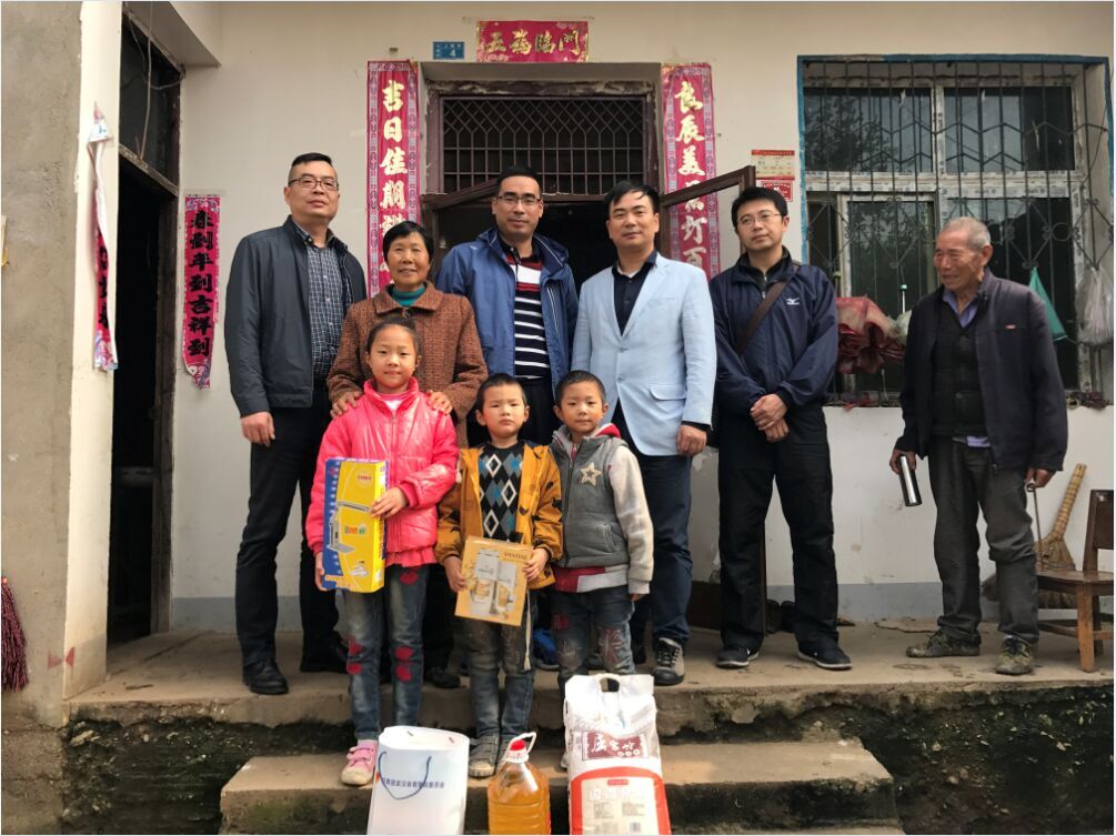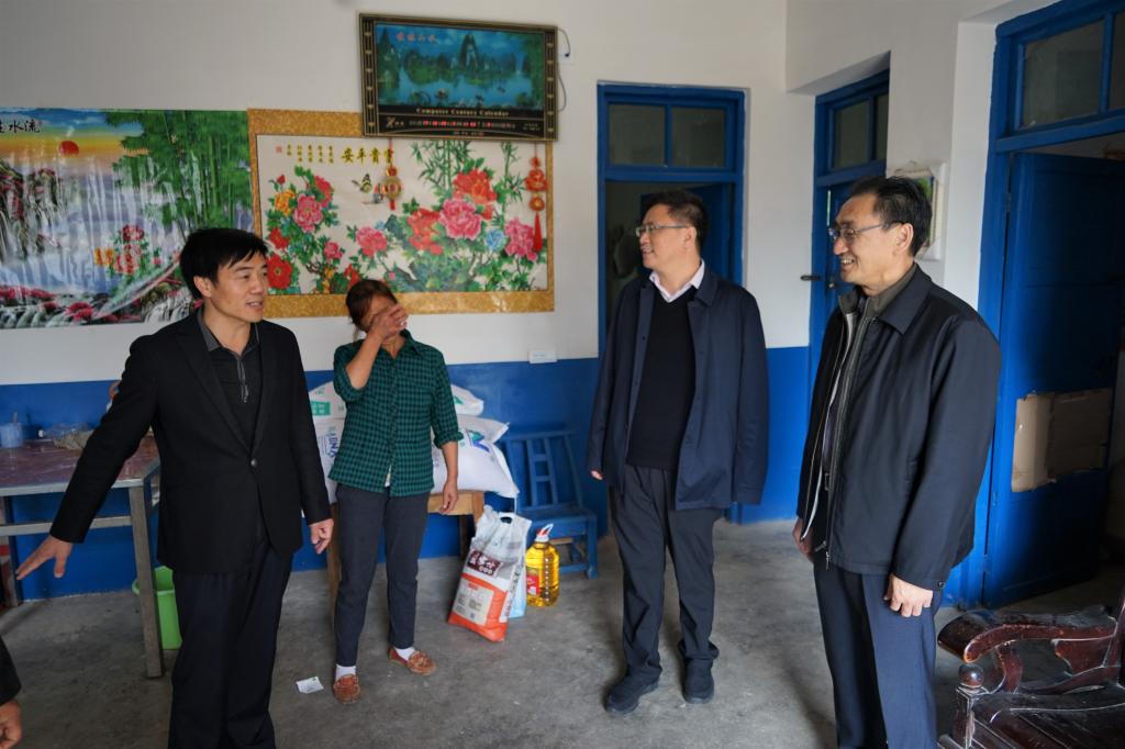 彭道海、易三平及相关部门负责人在大悟县县委副书记鲍克明、丰店镇党委书记付海波的陪同下一道走访慰问了驻点村贫困户和留守儿童,并前往驻村工作队孝感片片长单位驻点村汇报了我校上一阶段的扶贫工作。