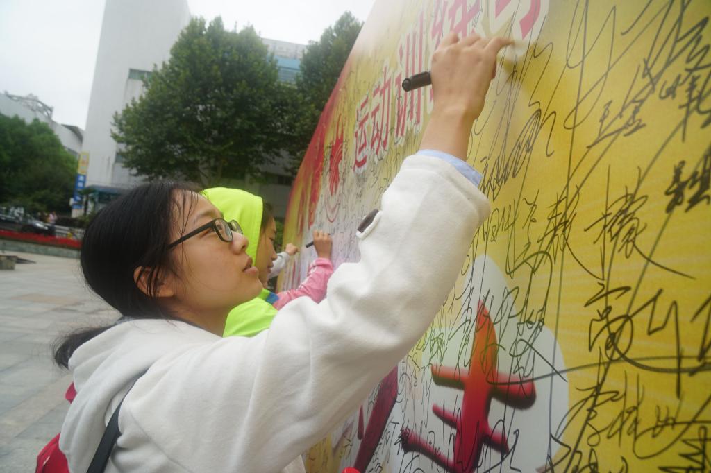 “这样的活动对于我们大学生来说特别有意义,我觉得大家都应该参与进来,共同迎接党的十九大胜利召开。”运动训练学院学生会主席郭政在签名墙前说道。写下密密麻麻近千条签名和寄语的,有刚刚进校的新生,也有白发苍苍的退休教师,就连外国留学生也停下脚步签上自己的名字。